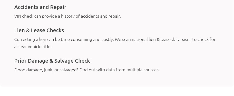 Unlike some free VIN lookup or VIN decoders, it allows users to access important information about a vehicle's history, such as its accident history, mileage ...